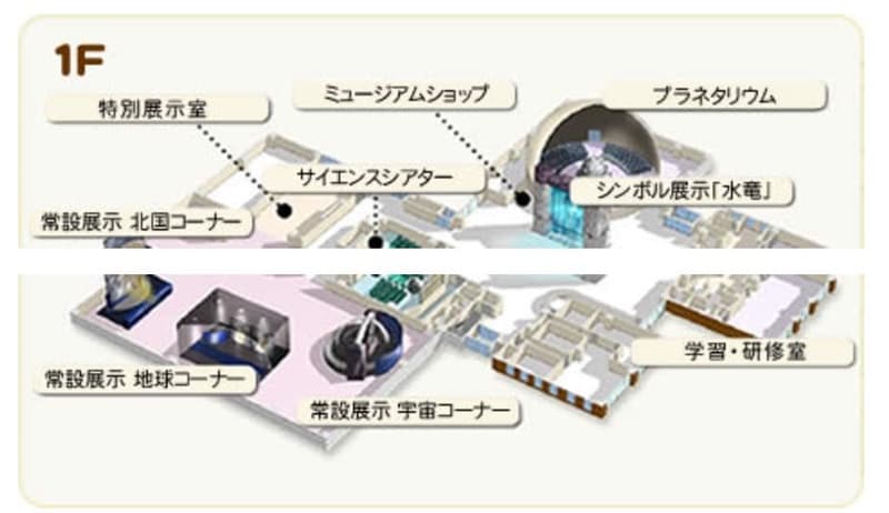 メインの展示や体験、プラネタリウムは1階にまとまってある