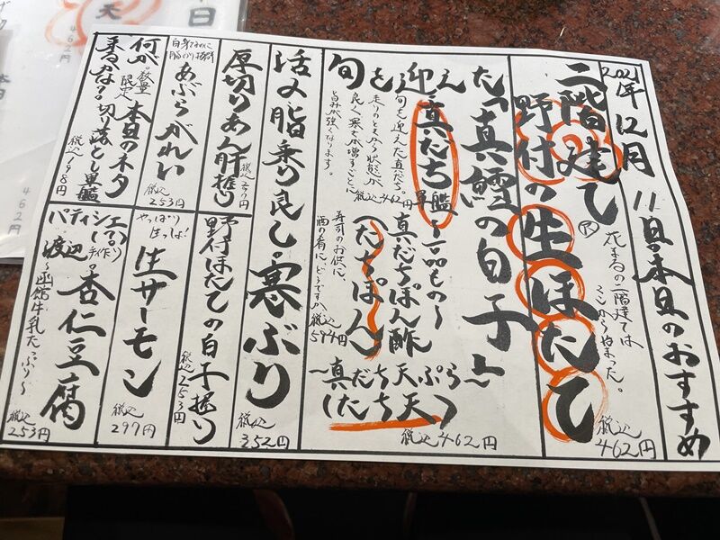 花まるでは本日のおすすめなどでちょっと変わったネタがあったりもする