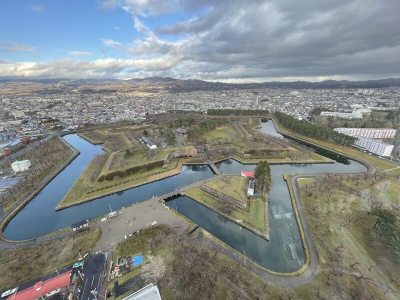「五稜郭タワー」というのもあって、展望台に上がると(有料)五稜郭の特徴とも言える星形をした敷地を上から眺めることができる