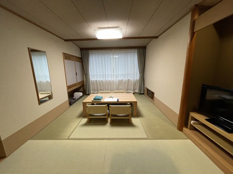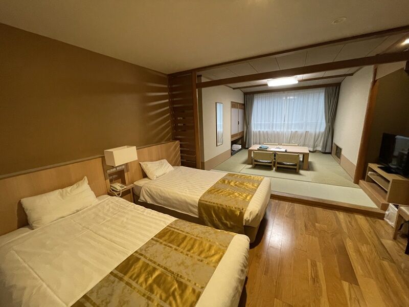 和室とベッドが分かれていて、2人だと広々とくつろげる