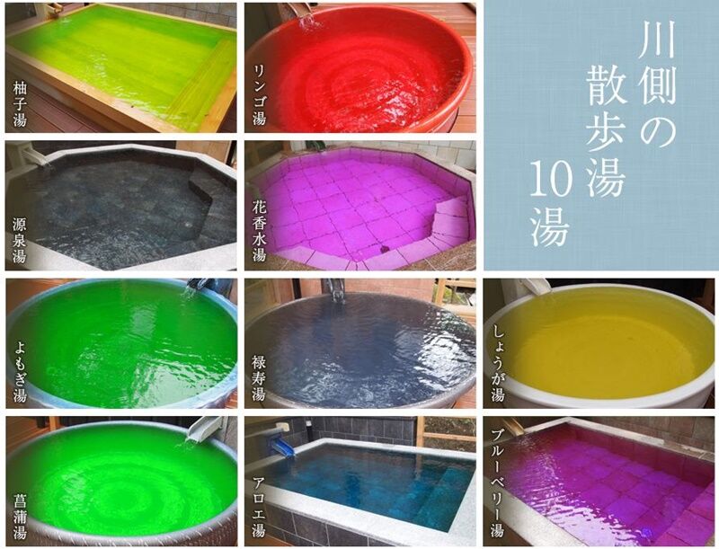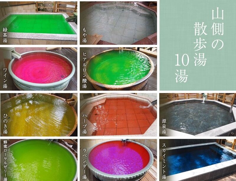 10種類の露天風呂がそれぞれ配置されている
