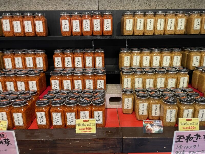 こうしたお土産用の生きのこに、なめ茸などの加工品、きのこの他にもチーズやはちみつなど、地元の特産品なども置いてある