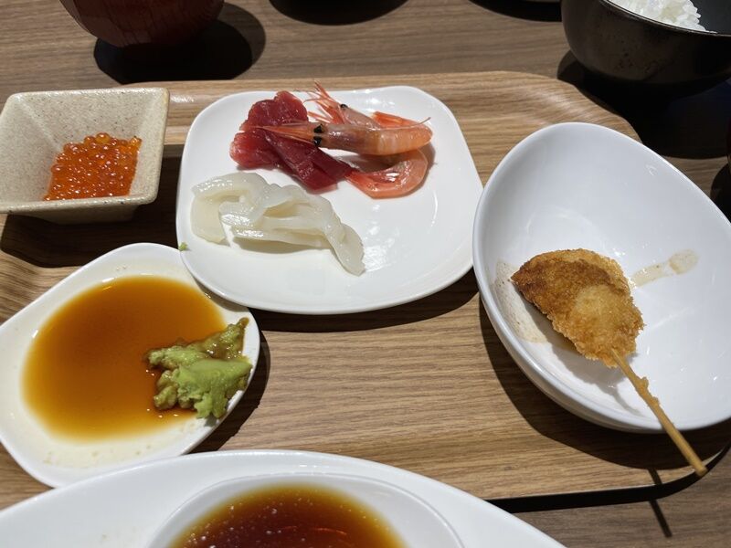 お刺身もごはんに乗せて朝からミニ海鮮丼も堪能