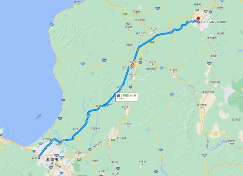 旭川までは下道で約3時間