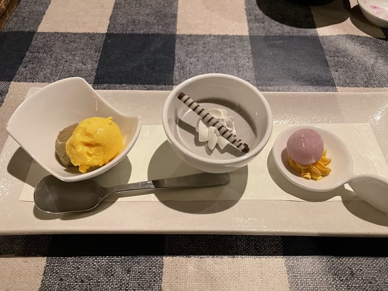 こういうところのデザートは大体1種類で、ハズレだとゆずシャーベットのイメージが強いけど、どれもそれぞれおいしく適量で大満足のデザートだった