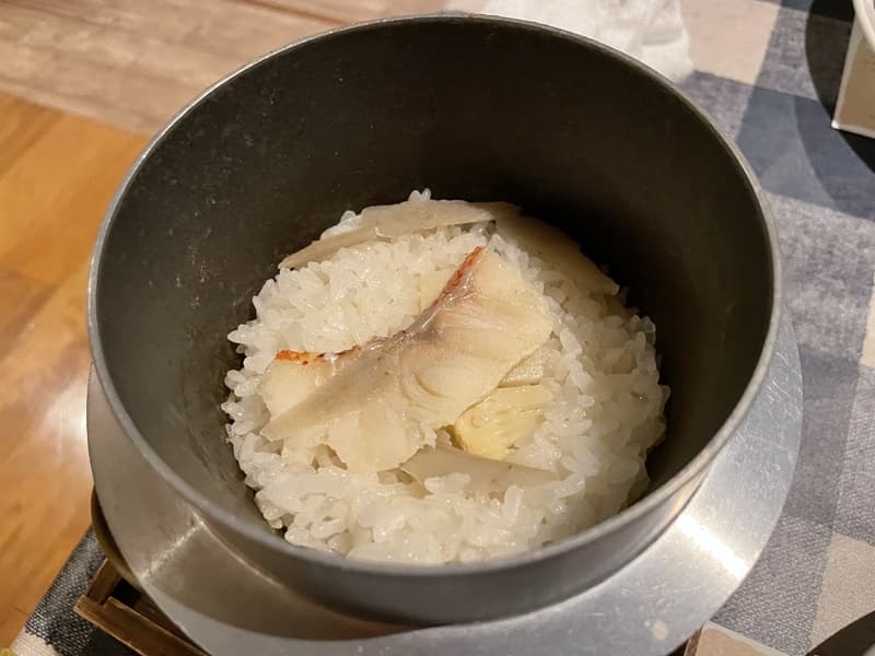 そして、〆には炊き上がったキンキと筍の釜めし、お吸い物