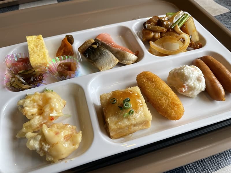 鮭やウインナーなどの定番はもちろん普通な感じではあったけど、エビマヨや酢鶏の中華はなかなか味がいい
