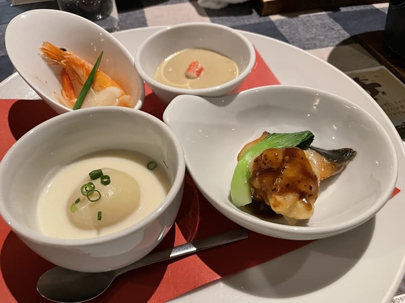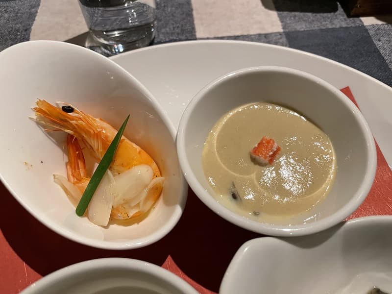 銀鱈もかにみそもめちゃめちゃうまくて、ヴィシソワーズには中にいももちのようなものが入っていて、これもおいしかった