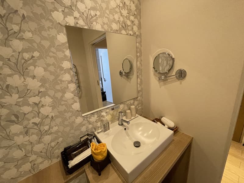 さらに洗面所やシャワールームも清潔感があって、なんとタオルウォーマーまで付いている