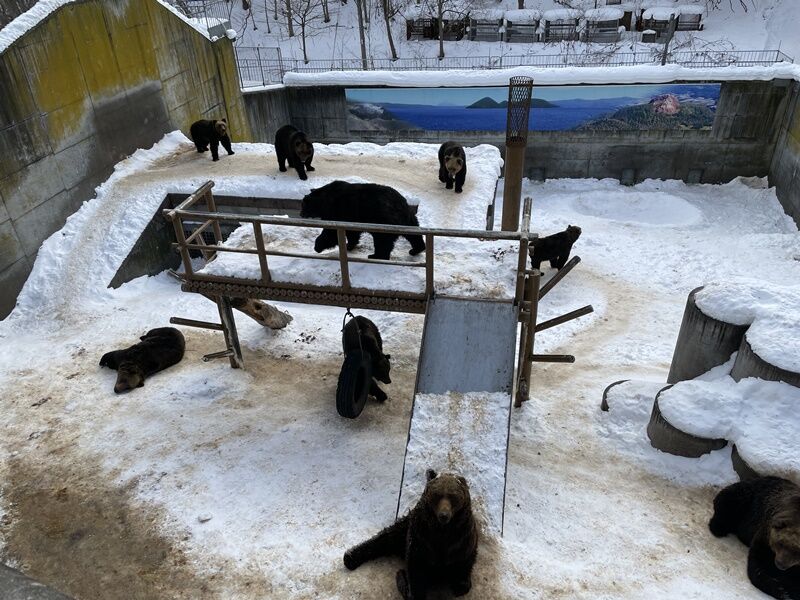 途中京極町の「名水うどん野々傘」でうどんを食べて、洞爺湖町では「昭和新山熊牧場」で遊んだ後にペンションおおのへ!