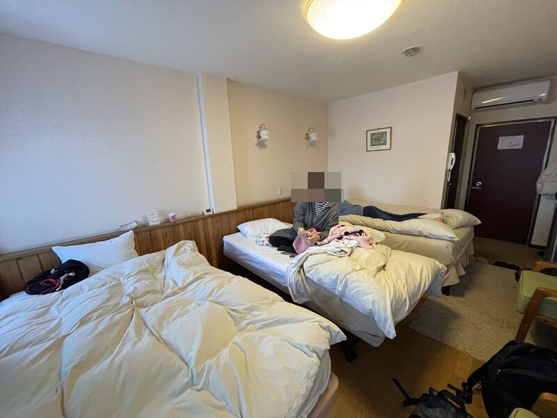 ベッドが3台入っているのもあるが、まぁベッドの上で過ごせば十分にくつろぐことはできる