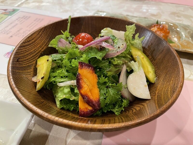 サラダは新鮮な野菜がたくさん入ってて、自家製ドレッシングがまた最高だ