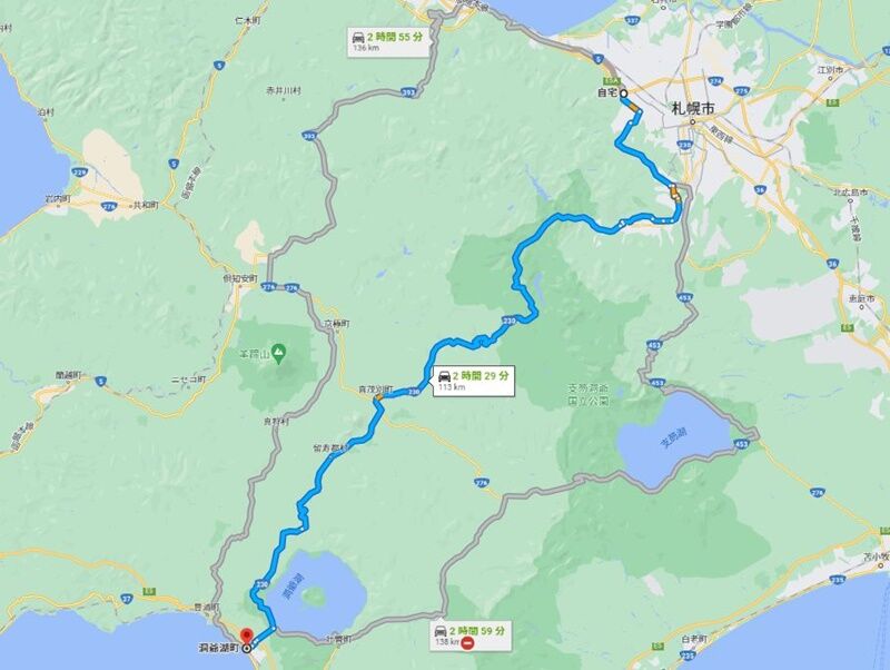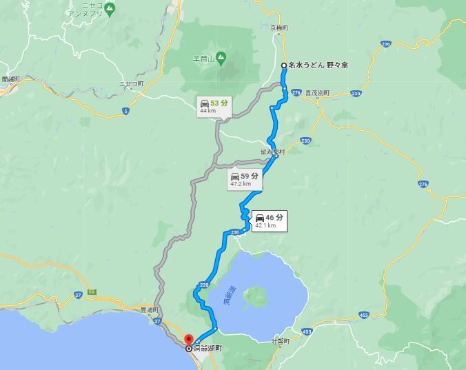 札幌⇒中山峠⇒喜茂別⇒留寿都 を経由するのがベター