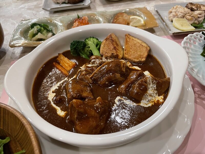 ほろほろのスジ肉が入っていて、濃厚な味わいのシチューでごはんが進む