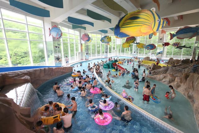 赤ちゃんが遊ぶ様なプールもあります。そこの水温は他より暖かかったですし、すぐ近くにトイレもありました。 時期によっては中国や韓国の観光客でいっぱいです。