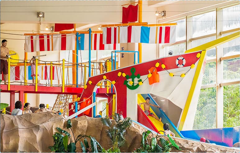 ここ水の王国ラグーンは札幌でも有名な「定山渓ビューホテル」内にある室内プール