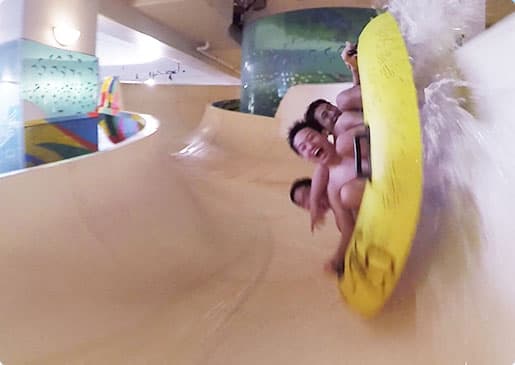 ここは流れるプールから波のプール、ウォータースライダーと子供から大人まで楽しめるゾーン