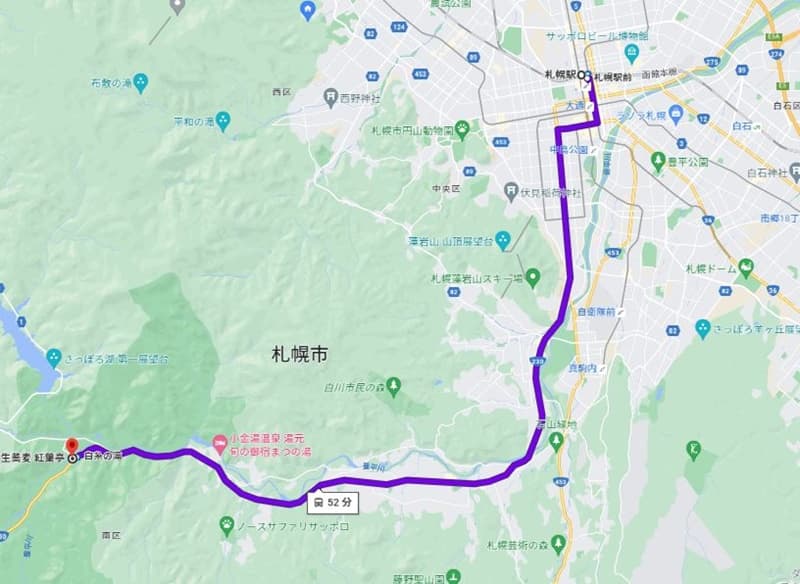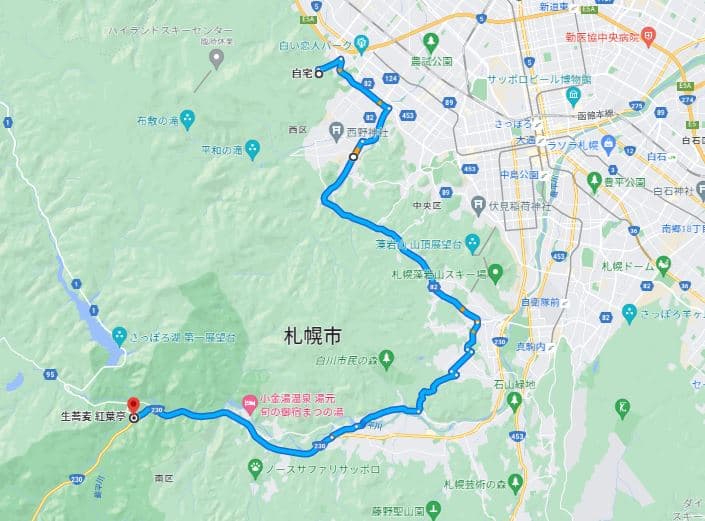 定山渓なので札幌からは約40分~1時間ほどの距離